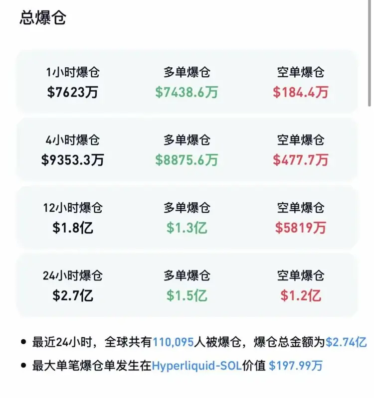 剧烈波动下,加密货币近24小时全球有超11万人爆仓。