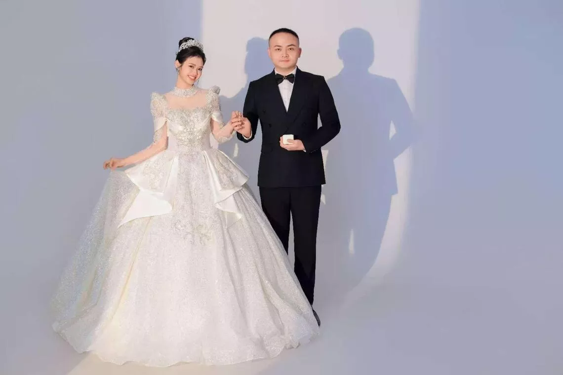 29岁福建小伙子卢圳良(右)一年多前迎娶22岁印尼女生娜娜(左),图为两人在厦门拍的结婚照。(《联合早报》)