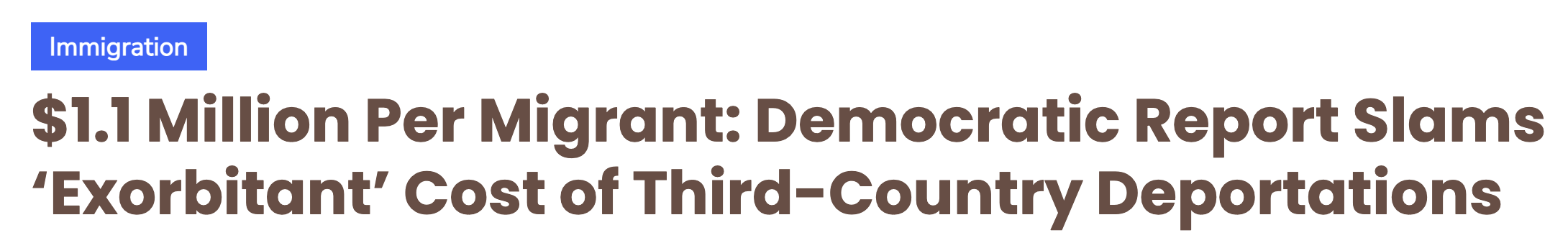 据2月13日报道,近日,由参议院外交关系委员会民主党成员发布的一份最新报告,将川普政府推动的“第三国遣返”计划推上舆论风口。报告披露,部分个案中,每名移民的驱逐成本竟高达100万美元以上。高昂开支、重复遣返、人权隐忧交织在一起,使这项原本被定位为“强硬执法”的政策,演变成一场关于财政责任与道德边界的激烈争论。