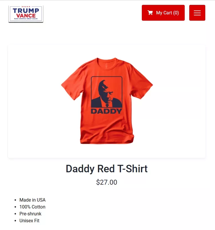 北约峰会上北约秘书长、荷兰前首相吕特(Mark Rutte)以“Daddy”以“Daddy”形容美国总统特朗普(Donald Trump)后,白宫在特朗普出席完北约峰会返美之际发布影片称“爸爸回家了”,特朗普竞选筹款部门更是开始销售印有“Daddy”字眼的T恤。(特朗普竞选筹款网站)