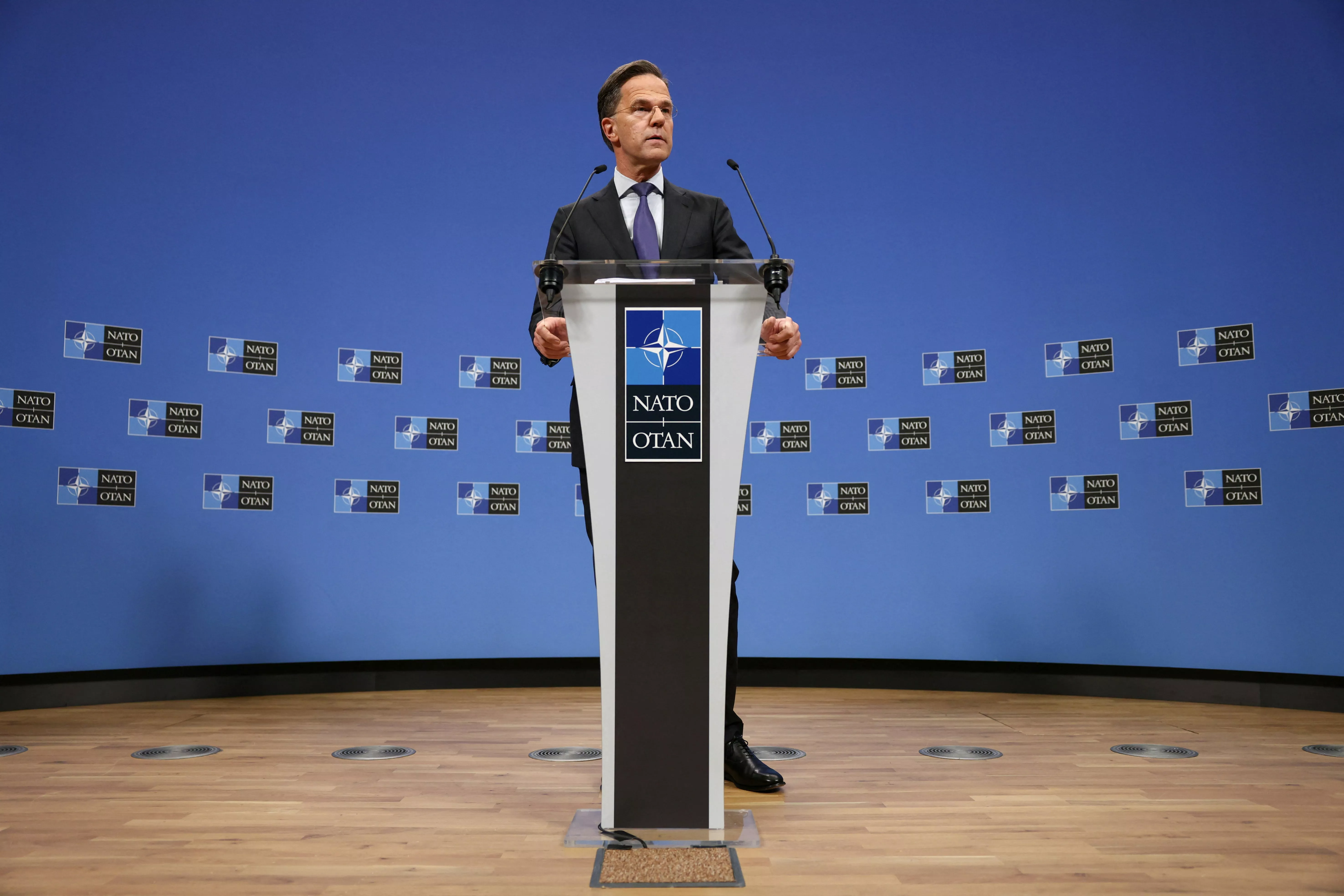 北约秘书长、荷兰前首相吕特(Mark Rutte)2026年2月12日在布鲁塞尔召开记者会(Reuters)