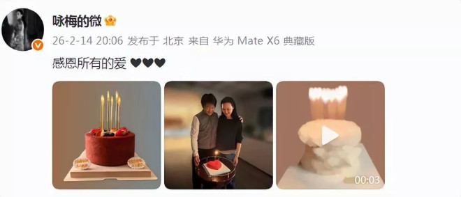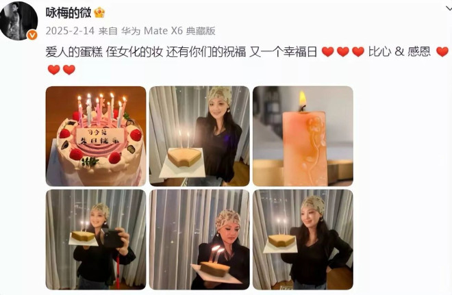 2月14日,恰逢情人节。咏梅晒出了自己的生日照,也罕见秀了恩爱生活。她穿一件宽松的黑色上衣、下身搭配牛仔裤,露出纤细的手臂线条,素颜的状态很平和。