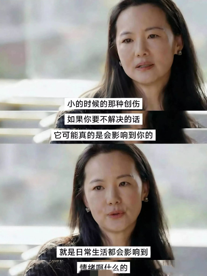 在访谈节目中,咏梅曾经说过:如果小时候收到的那种创伤不去解决的话,真的可能会影响到你的日常生活、以及情绪,甚至重大决定。