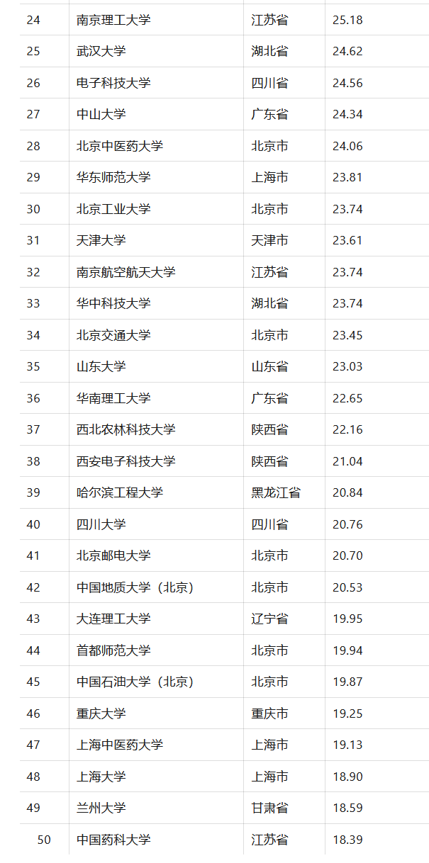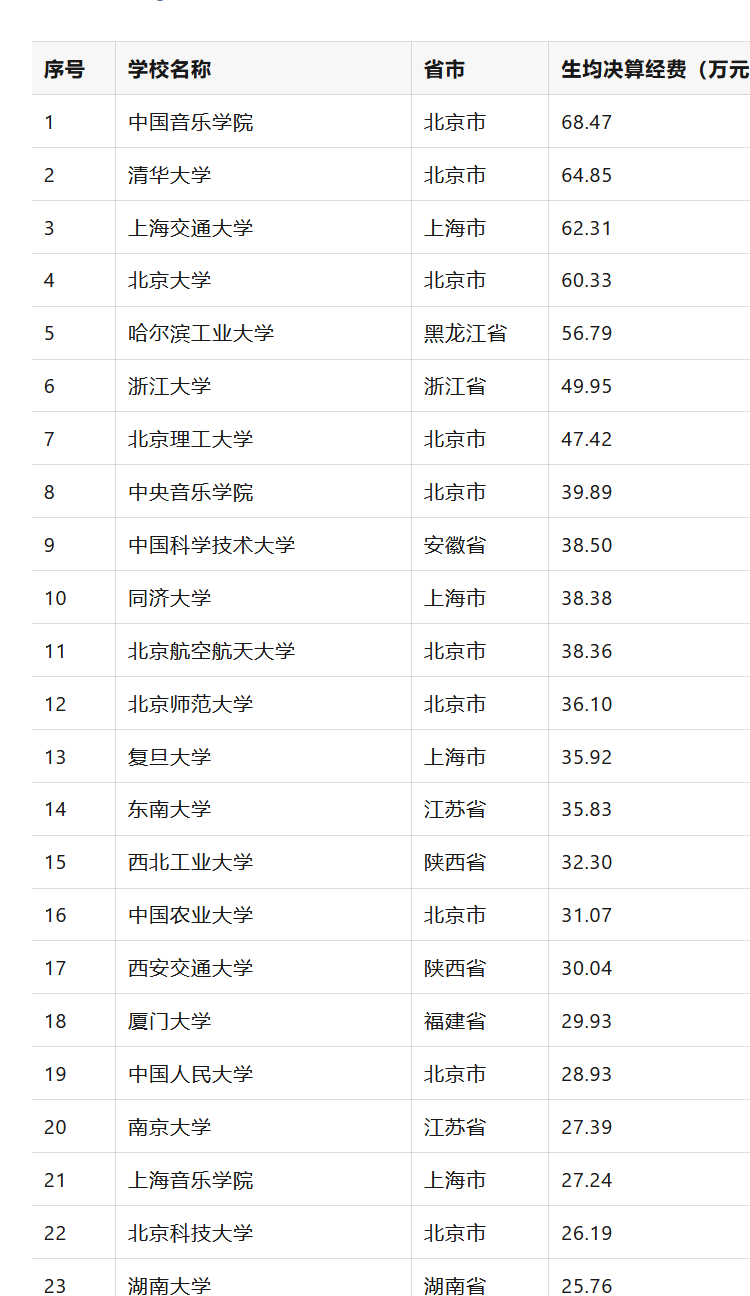 中国高校2024年度生均决算Top50水木TsinghuaCent
