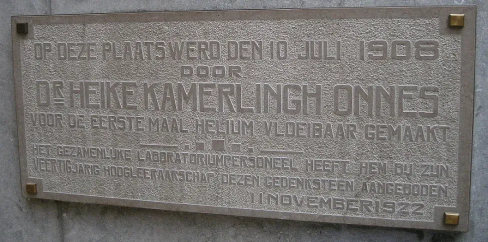 莱顿大学关于昂尼斯获得液氦的纪念碑