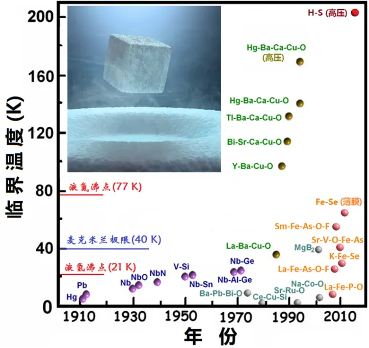 各种代表性超导材料发现的年代及其临界温度