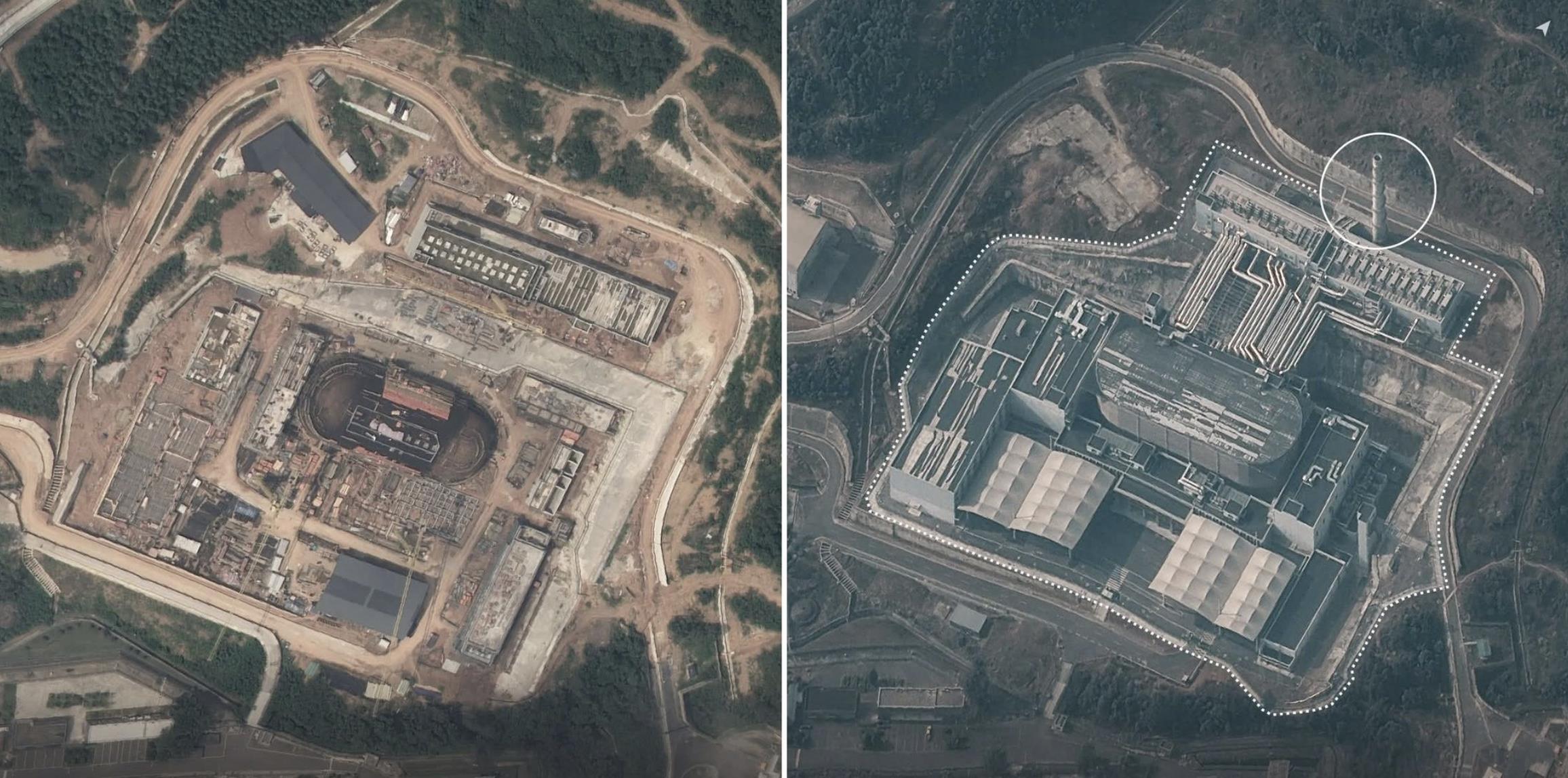 另一处平通则为双层围栏设施,可能用于制造通常含钸的核弹头弹芯,主建物高360英尺的通风塔近年翻修加装通风与散热设备,周边仍持续施工;其建筑结构类似美国核武研究设施洛斯阿拉莫斯国家实验室。