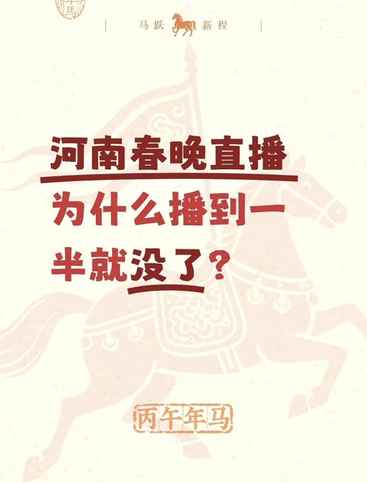 更有人把事件全盘托出:“2026年2月14日晚,河南卫视播出的春节联欢晚会在抖音800万人在线观看,直播途中被紧急掐断,完整回放视频在各大平台很快被下架,官方以‘不可抗力因素’作出含糊回应。中宣部正在研究是否叫停全国其他省区尚未播出的春晚……”。
