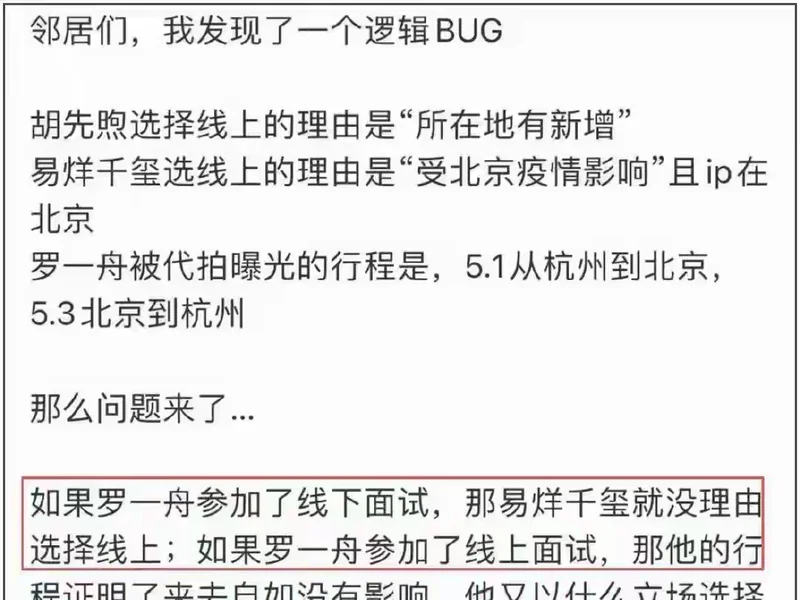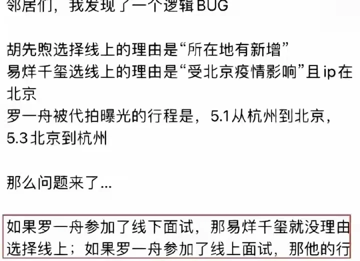面试流程双标!胡先煦线下到场!易烊千玺全程线上完成!区别对待写在脸上!