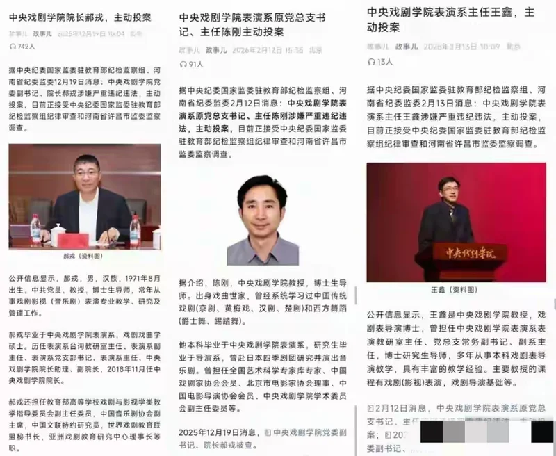 2026年开年!中戏直接炸雷!表演系三任主任接连被查!娱乐圈彻底乱套!