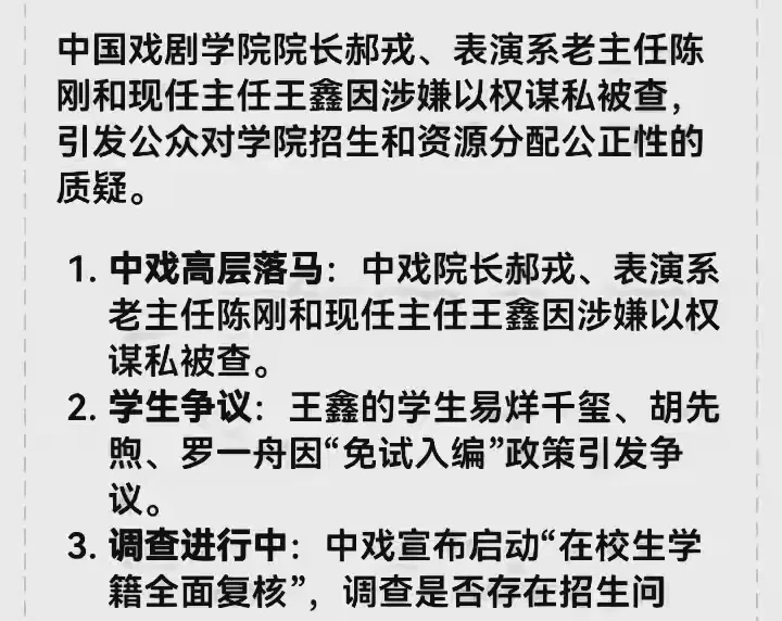 中戏三任主任接连被查!王鑫在职三人免试入编!易烊千玺再被推风口浪尖!
