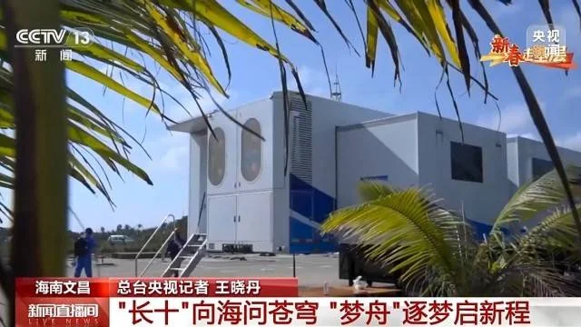 总台央视记者 王晓丹:由于长征十号的测发指控大楼还在建设当中,为了确保各项试验任务如期推进,科研人员暂时把火箭后端测发系统临时搭建在集装箱方舱内,在这里对火箭进行发射前的各项远程控制、测试和检查等工作。