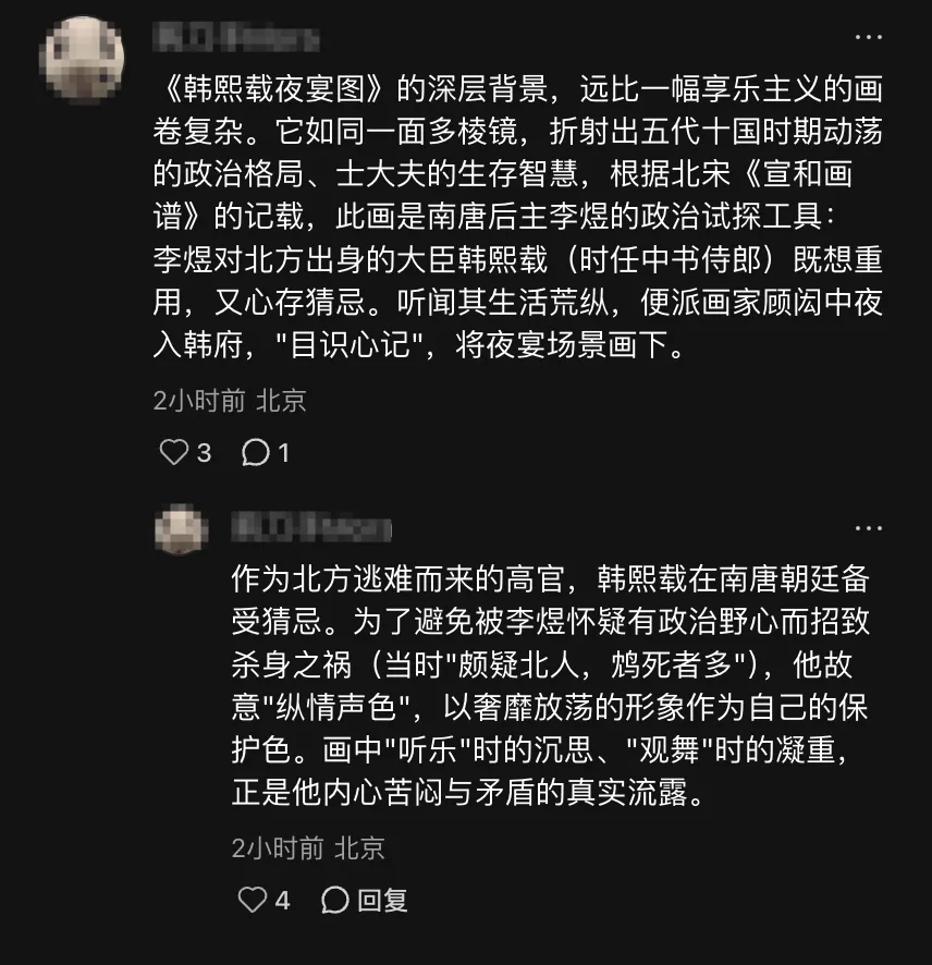 现如今,AI技术已经非常成熟 你会用AI做什么内容呢? 今天小志就来介绍一位复原古画的博主 他利用AI复原了《韩熙载夜宴图》 博主:关于此画的背景不再赘述,谈一谈古画复原的思路,如今大部分的复原是停留在古画的纸面上,然后将画中人物变成真人,但这种做法呈现的最终效果特别像一个人物站在二维的平面上,而不是真实的物理世界。再一个,如果失去了光源和家居陈设,所有的古画修复,看起来依旧是一幅画,而古人的生活...