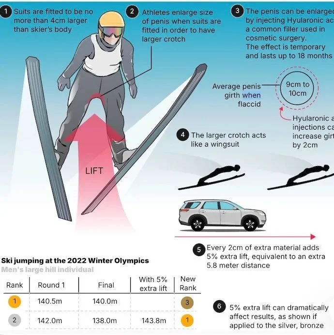 这次冬奥会上,组委会不得不在运动员滑雪服的裆部加装芯片,为的就是防止改服装的作弊手段再次出现。