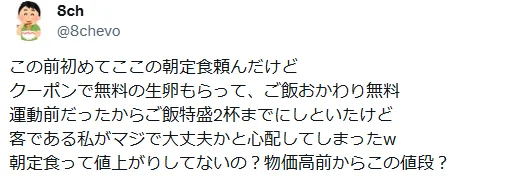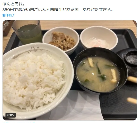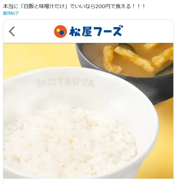 说实话,小编看到这儿还是无法相信:在日本物价飞涨、还动不动就要涨消费税的背景下,花15块钱吃碗白饭配个紫菜汤,再加一口肉真能感动哭?我甚至猜测,他这里一定是使用了什么博大精深的修辞手法——比如,反讽!但当我往下划到评论区…我就不应该往下划。哦,别担心,三观没碎;掉地上的是消费观,都快摔成散黄的了。
