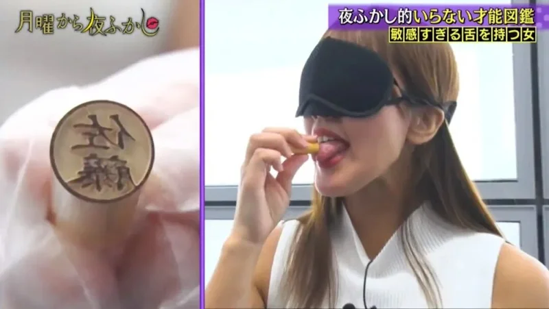 令人惊讶的是,不论是较为复杂的「渡边」,还是笔画较多的「佐藤」,日里麻美只需用舌头舔上一圈,就能准确地猜中印章上面的姓氏。