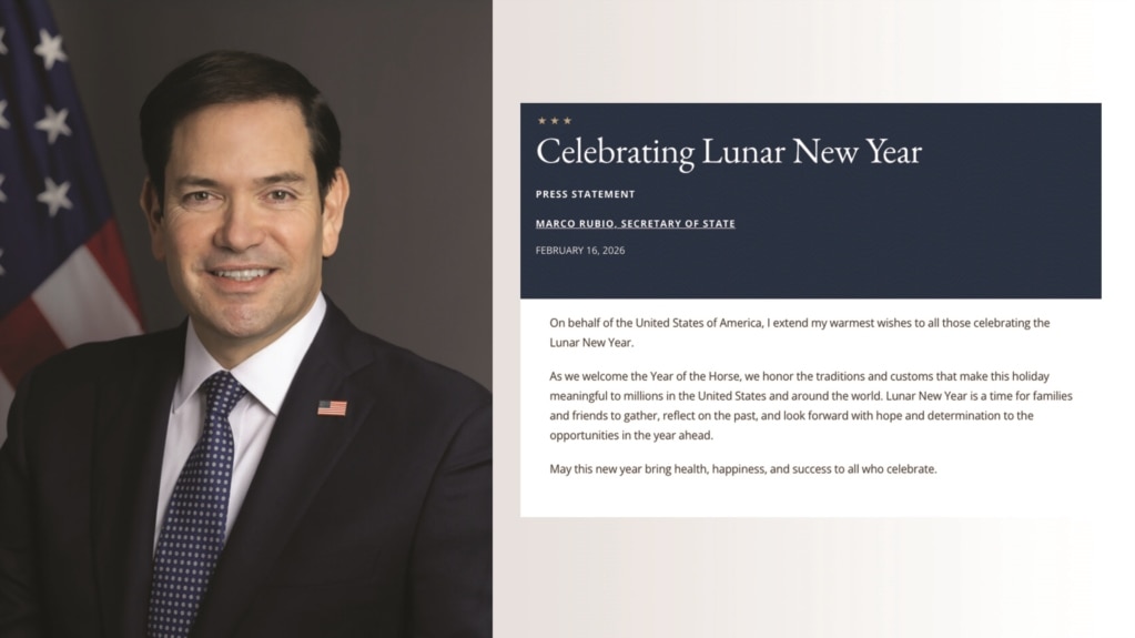 美国国务卿卢比奥2026年2月16日发表欢庆农历新年的声明。