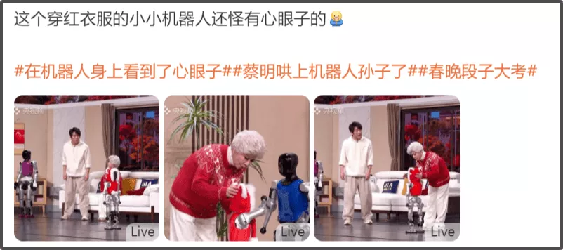 后面蔡明还和机器人一起跳舞,真是梦回当年了。
