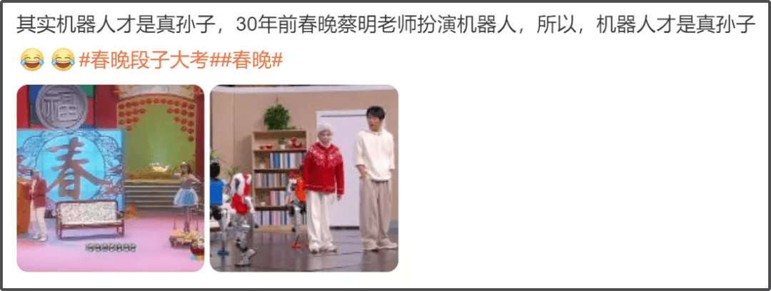 30年前蔡明在春晚上演机器人;30年后,蔡明在春晚上,和真的机器人一起表演节目了,这谁看了都得感叹一句,时代在进步,科技在飞跃!