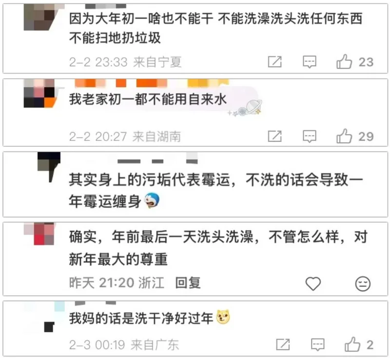 对此,全国多地网友纷纷现身说法,表示自己确实除夕要洗干净~