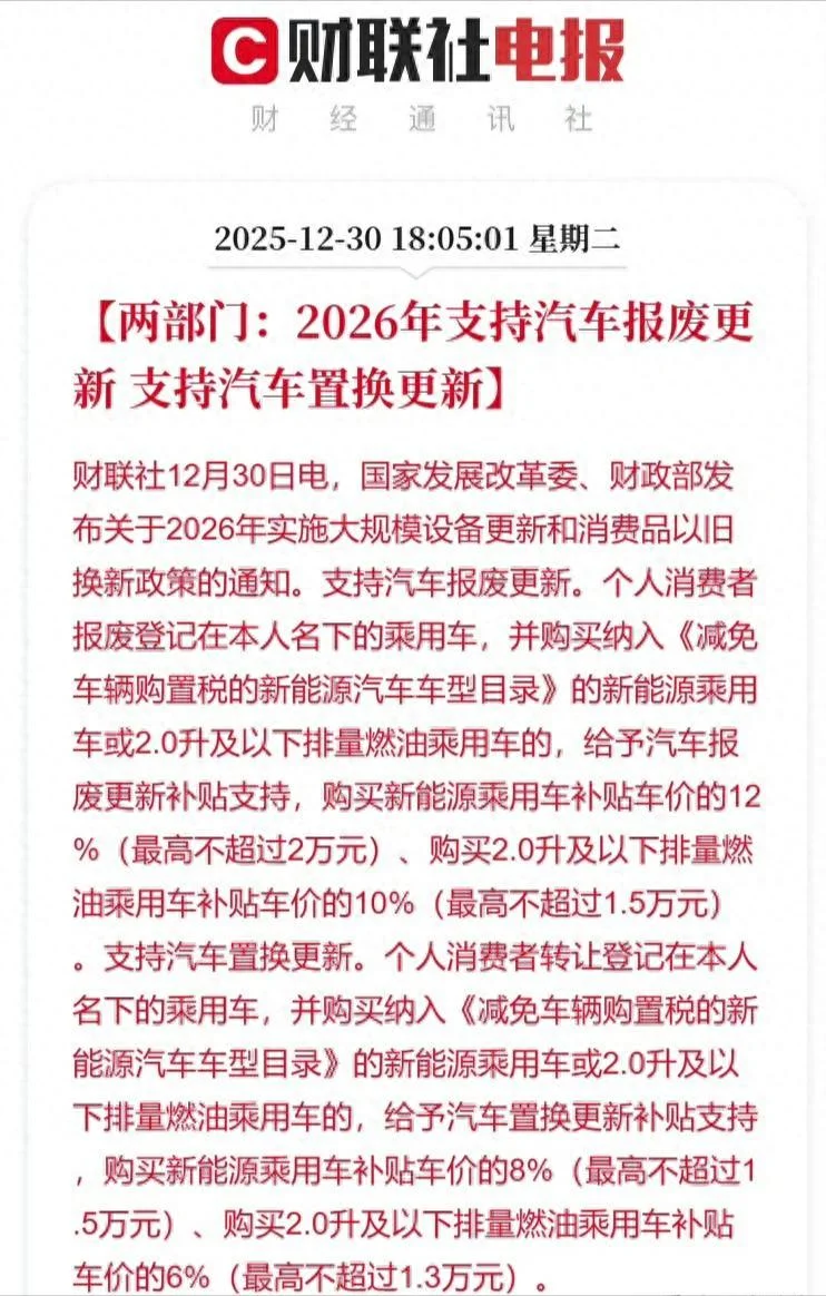 首先是,2026年汽车国补变了,对市场的影响是显而易见的。