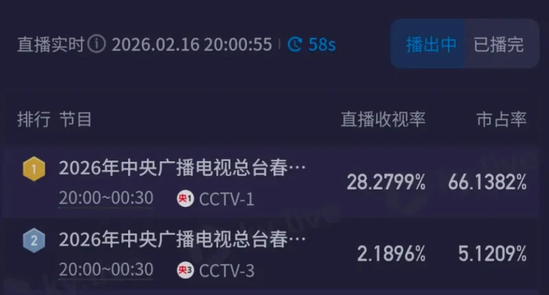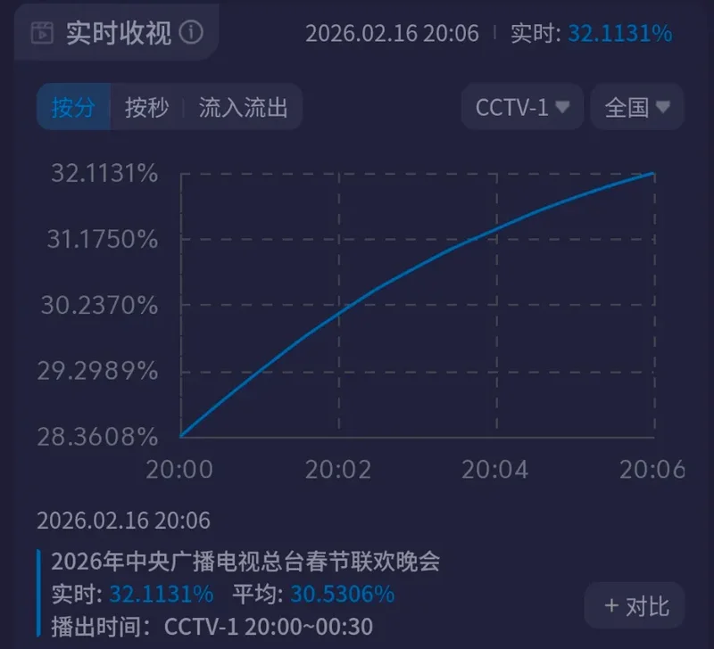 不到3分钟,马年春晚收视就突破了30%,观众纷纷开机,收视一路飙升;