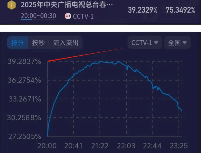 相比较蛇年春晚的39%,马年春晚的39%更接近40%了,别小看0.5%的上涨,咱们春晚开机率一向很高,如今还有网络直播分散收视,还能收视一年比一年高,也是很不容易啦。