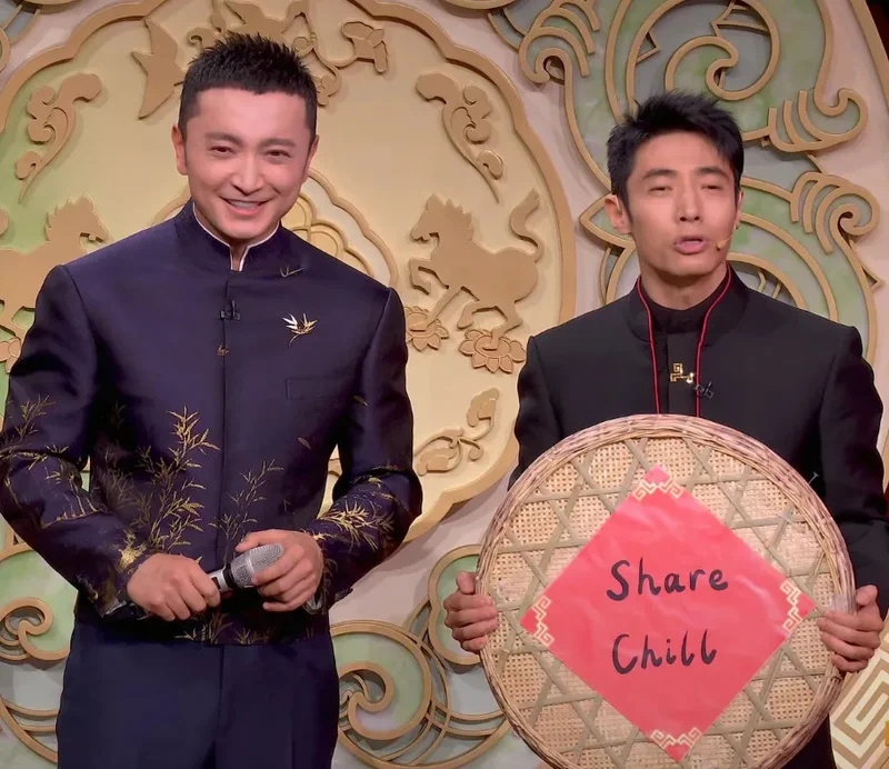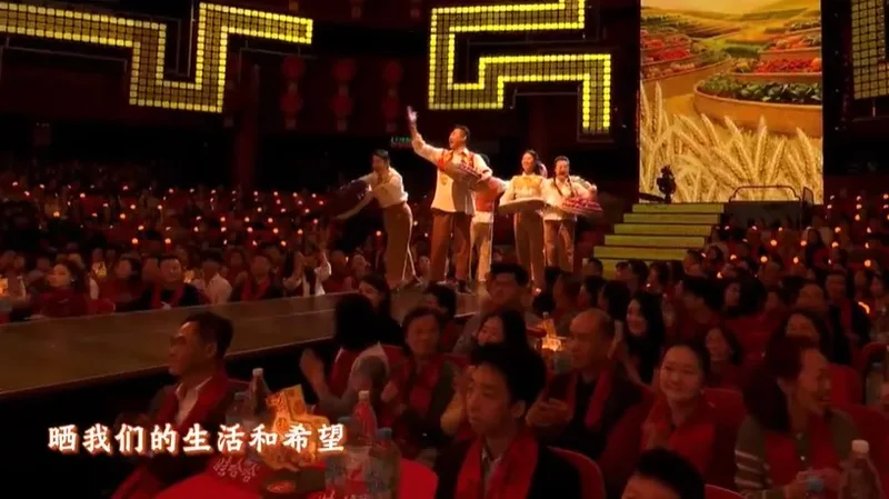 在机器人、ai、短视频的包围之下,21:14左右,《来晒秋》来了,凤凰传奇上了12次春晚了,但《来晒秋》最先出场的不是玲花、曾毅,而是农民合唱团的叔叔阿姨们。