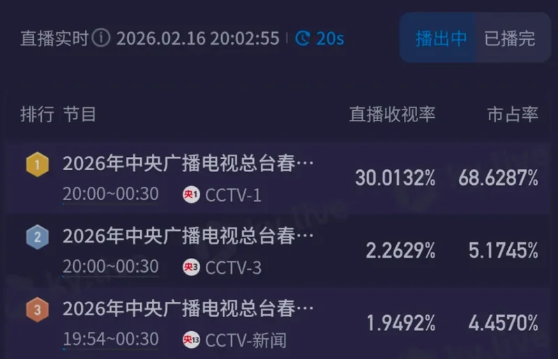 开场半个多小时,马年春晚收视突破37%,进入关键时刻,决定着能否超越往届春晚收视。