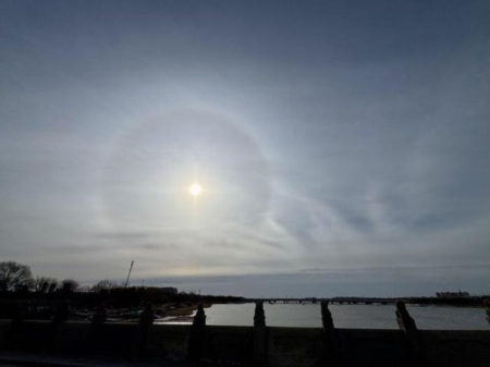 2026年2月15日清晨,北京天空出现日晕。(网络截图)