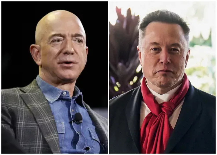 马斯克(右)与贝佐斯各自拥有太空公司。美联社、路透
