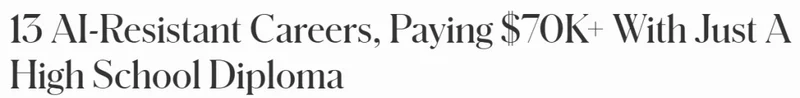 他指出:“这些职业不仅在增长,而且具有极强的抗风险能力。这证明四年制大学学位不再是通往稳定未来的唯一道路。对于只有高中学历的人来说,仍然存在大量AI无法替代的高质量职业机会。”