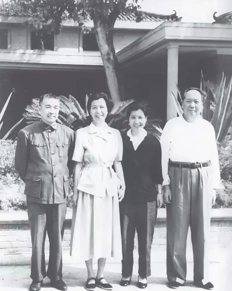 她来到毛住处时,毛正在院子里摆弄炉子烧水,她望着毛的背影没吱声,笑眯眯地踮着脚,轻轻绕到毛的背后,猛然拍了一下毛的肩膀,朗声叫道:“老毛!”毛一回头,立即惊喜异常,马上拉住她的手问长问短……