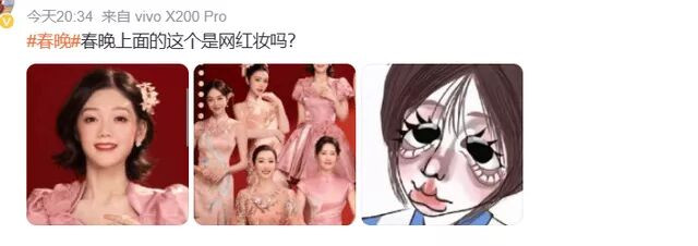 可她这次上春晚却有些失算了,刻意追求甜美的造型,却因此凹出了一种网红感,网友从整个节目里揪出她一位来吐槽,质疑她妆感太浓,像小网红。