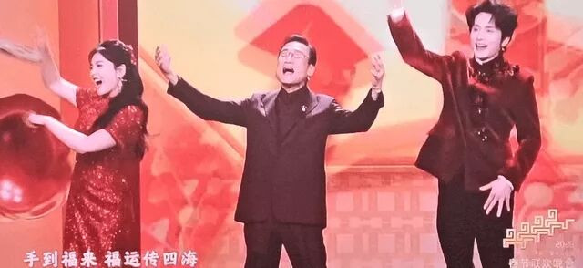 他本人倒是在春晚舞台玩得很欢,跳到模糊,差点跳出电视框,可能也只是图个喜庆,对自己造型没那么在意了吧。