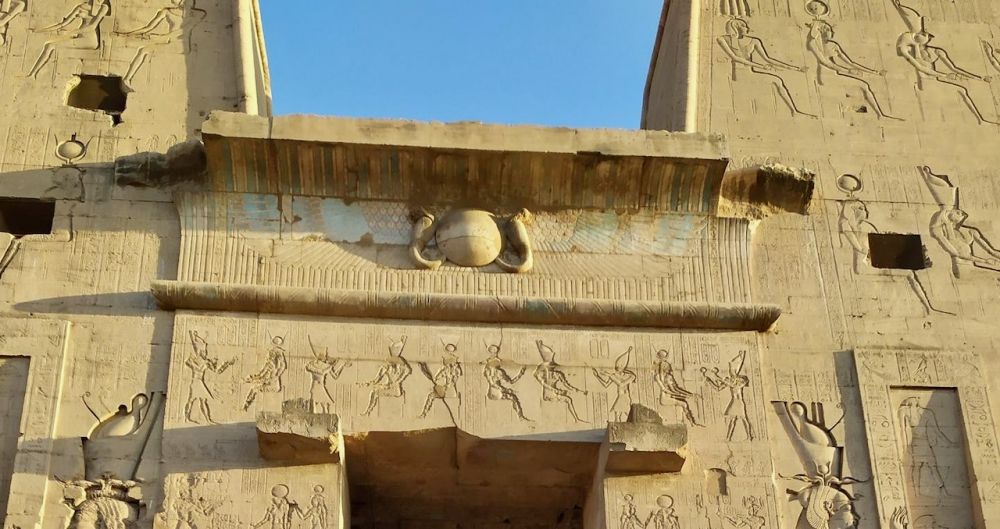 门楣中心是有翅膀的太阳和守护的圣蛇。