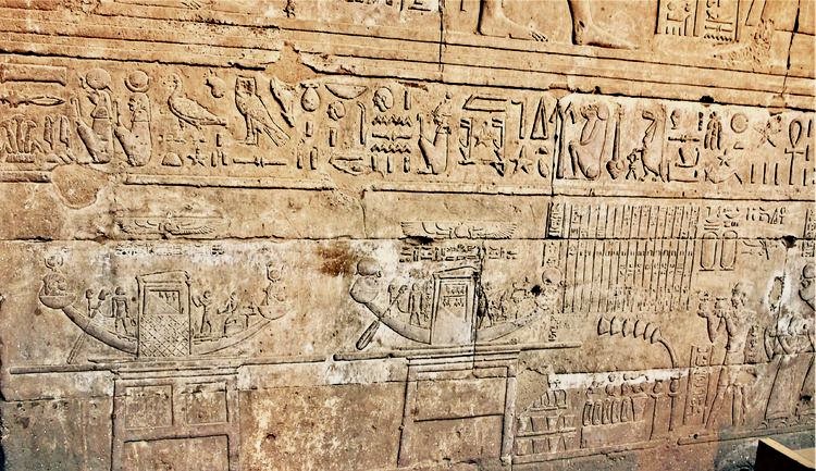 代表荷努斯的太阳船和代表哈索尔的太阳船在尼罗河中相遇