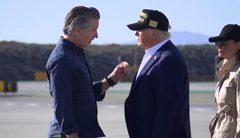 去年1月,特朗普访问加州山火受灾地区,与纽森会面 视频截图