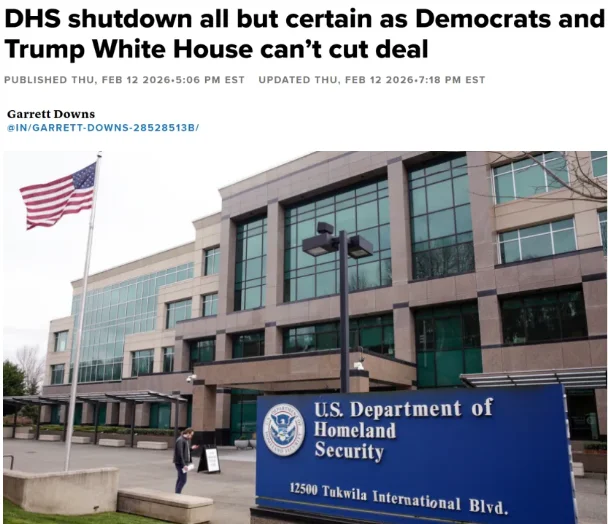 在此前的预算博弈中,国会虽已批准联邦政府多数部门运行至9月30日,但唯独针对国土安全部(DHS)的拨款仅延至2月13日。由于最新一轮拨款投票未获通过,国土安全部现已“单独”陷入停摆。
