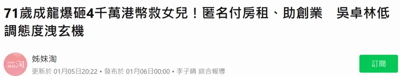 据传,成龙于2025年底通过信托基金,为吴卓林预留约4000万港币。