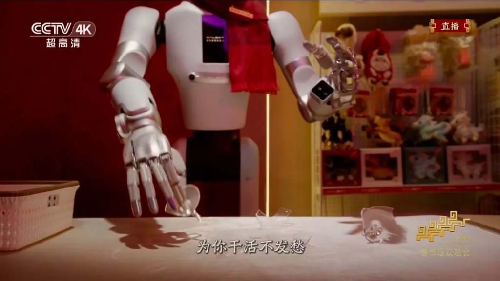 在春晚舞台上,“小盖”被要求从浅色桌面上捡起散落的玻璃碎片。这是一个对人类都颇具风险的精细操作,对机器人而言更是感知与控制的双重极限。
