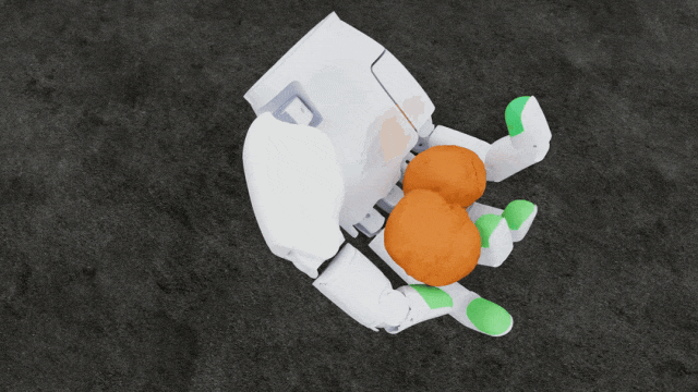 银河通用自主研发的 AstraBrain中的灵巧手神经动力学小脑模型,正是破解这一难题的关键。想要练好灵活盘核桃的小脑,机器人需要先是在虚拟世界里打基础,让机器手在虚拟世界里疯狂练习,系统会给它喂各种大小、重量的虚拟核桃,让它靠不断试错,练出一套适应性极强的“基础盘法”。