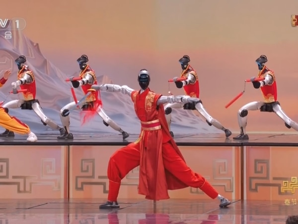 其中,2023年成立的魔法原子机器人最先登场,为陈小春、言承旭等人歌曲同台伴舞。然后,成立两年多的松延动力机器人与蔡明、王天放表演小品。宇树科技机器人则与河南塔沟武术学校共同表演武术。最后,银河通用机器人则与沈腾、马丽一同出现在贺岁微电影中。