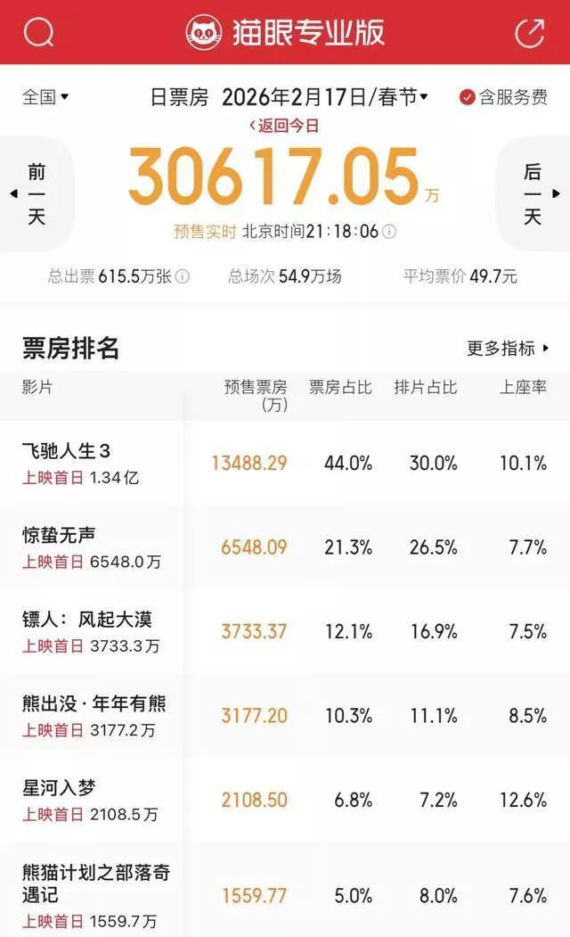 当头部影片占据绝大多数排片与注意力,中腰部影片的存在意义,在于检验市场是否仍然容得下多元类型。若所有票房都向前三名集中,春节档将越来越像一场寡头游戏;若第二梯队中出现黑马,行业的想象空间才不会被进一步压缩。