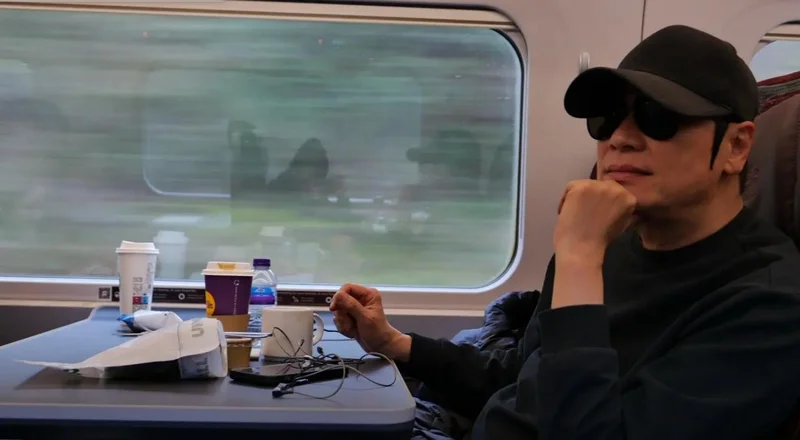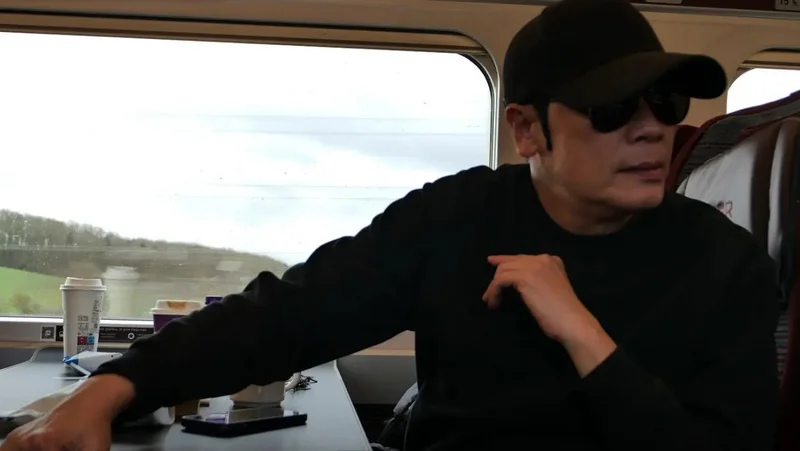 除了自拍外,苏岩还晒出在火车上为老公罗嘉良拍摄的照片。苏岩镜头下,罗嘉良着装同样以黑色为主色调,呈现出一种低调、舒适且略带神秘感的风格。