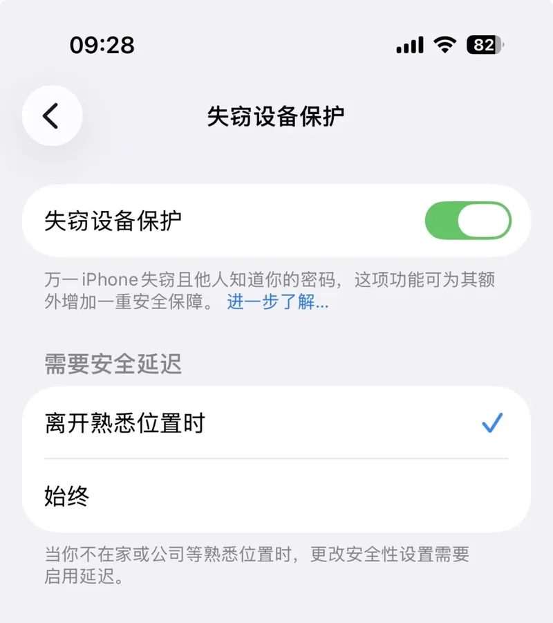 2,“失窃设备保护”默认开启