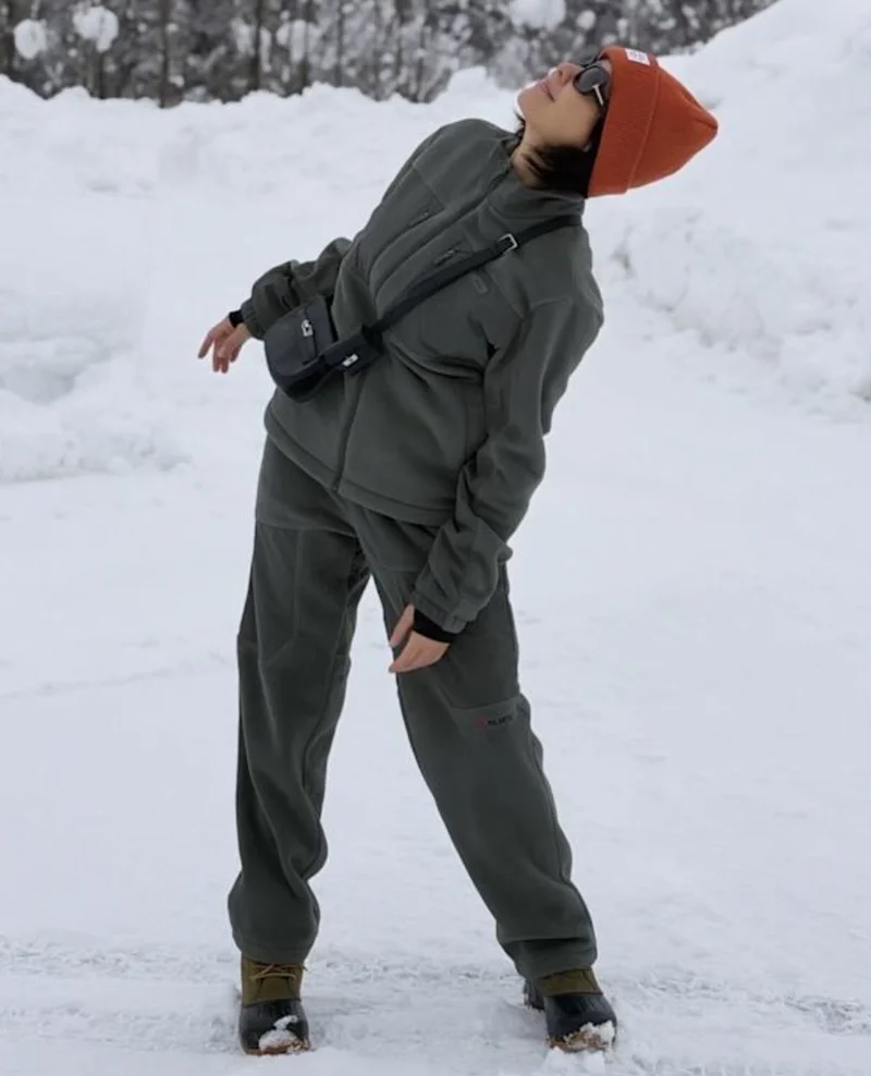 玩累了雪,脱下厚重的滑雪装备,刘嘉玲又变回了那个气场全开的女王。眼尖的时尚媒体发现,她在雪地里背的那个看似低调的小黑包,其实是爱马仕(Hermès)的Kelly Moov黑色肩背包。这款包设计简约,线条流畅,最特别的是还附有一个可拆卸的小配饰包,玩法多样,因此深受名媛圈的喜爱,据说现在的身价已经飙涨到了45万元新台币(约合人民币10万元)。果然,女王即使在雪地里摔跤,也要背着最贵的包优雅地摔倒。
