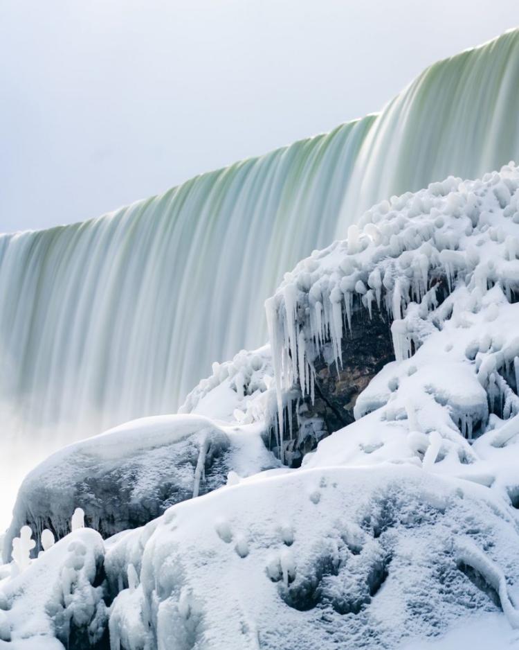 瀑布并未完全停止流动。冬季期间,每分钟仍有约 8.500 万公升的水流经尼亚加拉瀑布,水量太大,无法完全结冰。
