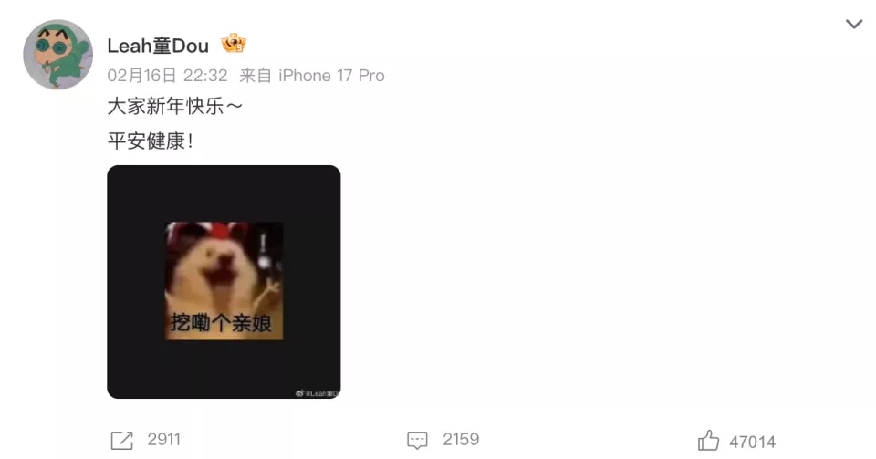 王菲演唱结束后,女儿窦靖童在社交平台发文 “大家新年快乐~平安健康!”,并配上 “挖嘞个亲娘” 表情包,引发网友关注。