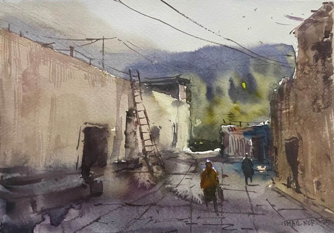伊斯马义江·努尔买买提水彩作品水彩指南2/17/2026伊斯马义江·努尔买买提1976年出生。 1998年毕业于新疆艺术学院美术系美术师范专业。 1998年到2004年在兵团十二师三坪农场子校任美术教师,2004年至今为自由画家。 00